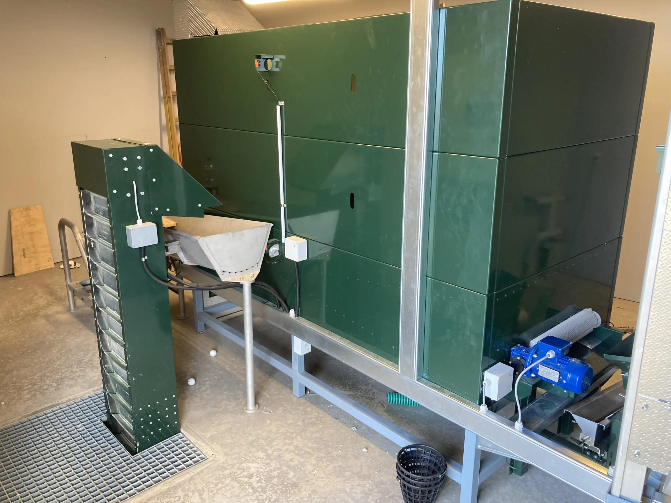 Po procesie mycia, przechowywanie piłek zależy od indywidualnych potrzeb klienta. W naszej ofercie znajduje się również zbiornik na piłki o pojemności 30 000 sztuk, który skutecznie przechowuje piłki.