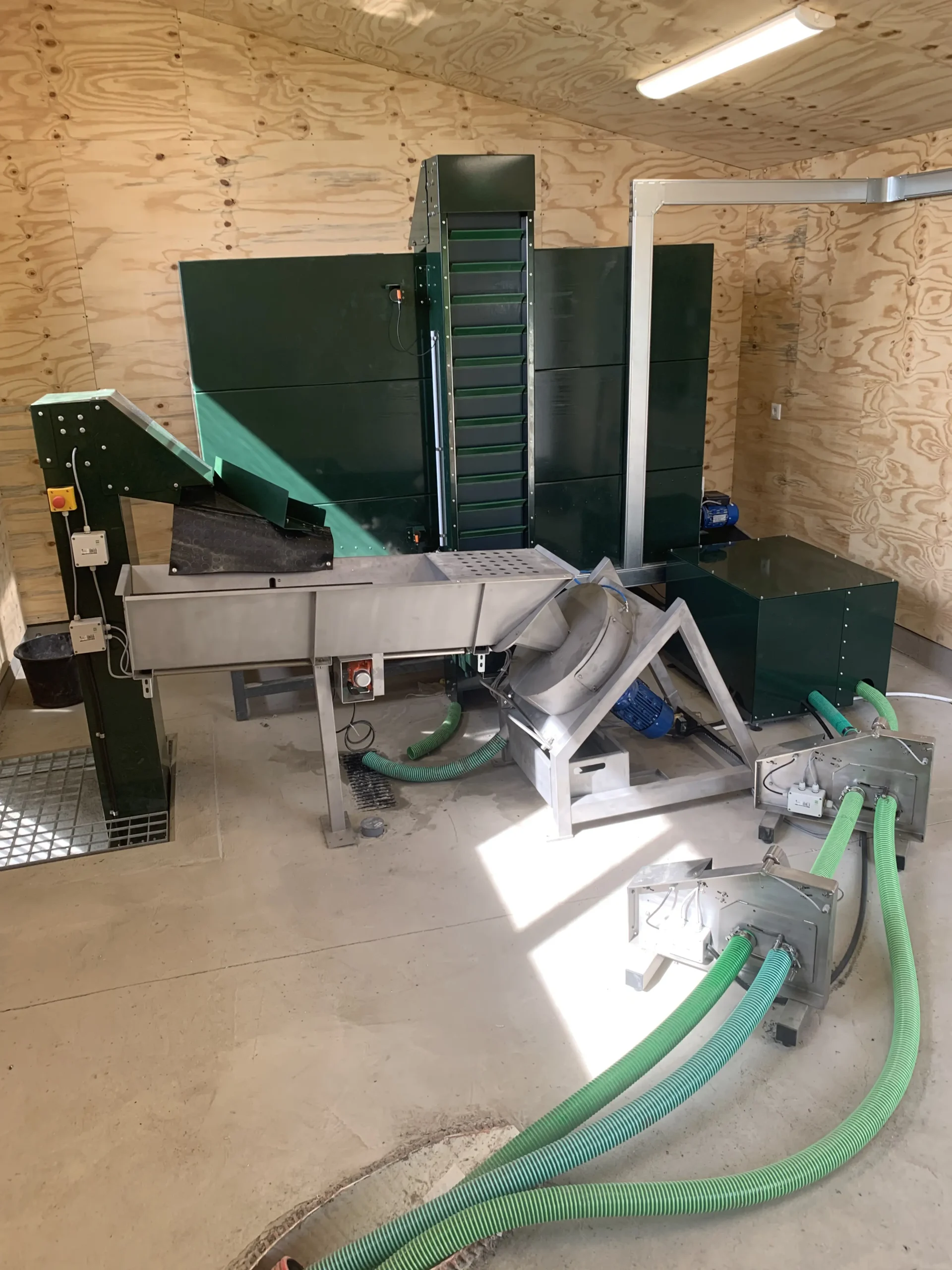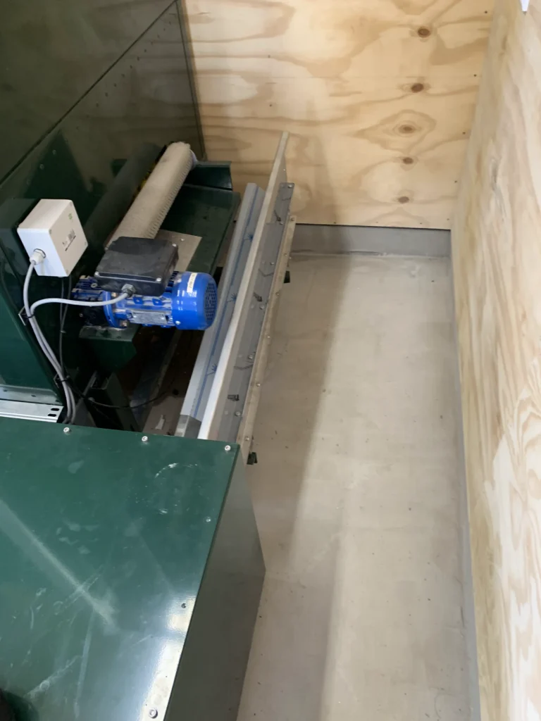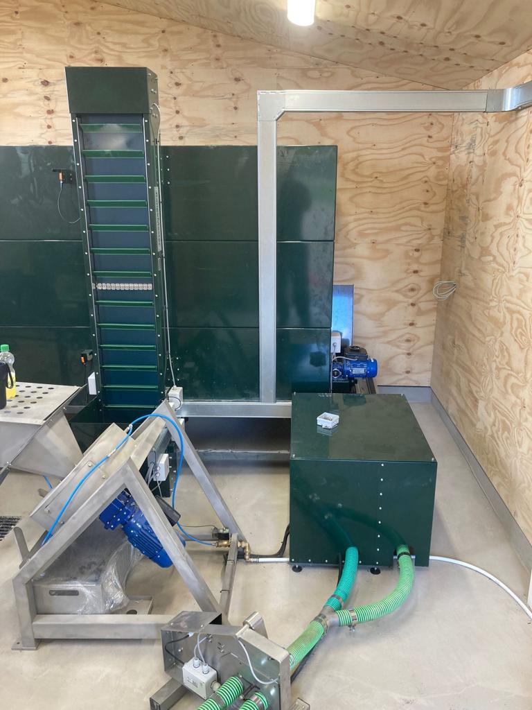 Koryto pełni kluczową rolę w procesie. Podczas transportu piłki jadą w górę windą. Następnie trafiają do koryta i kierowane są do myjki, gdzie są dokładnie czyszczone.